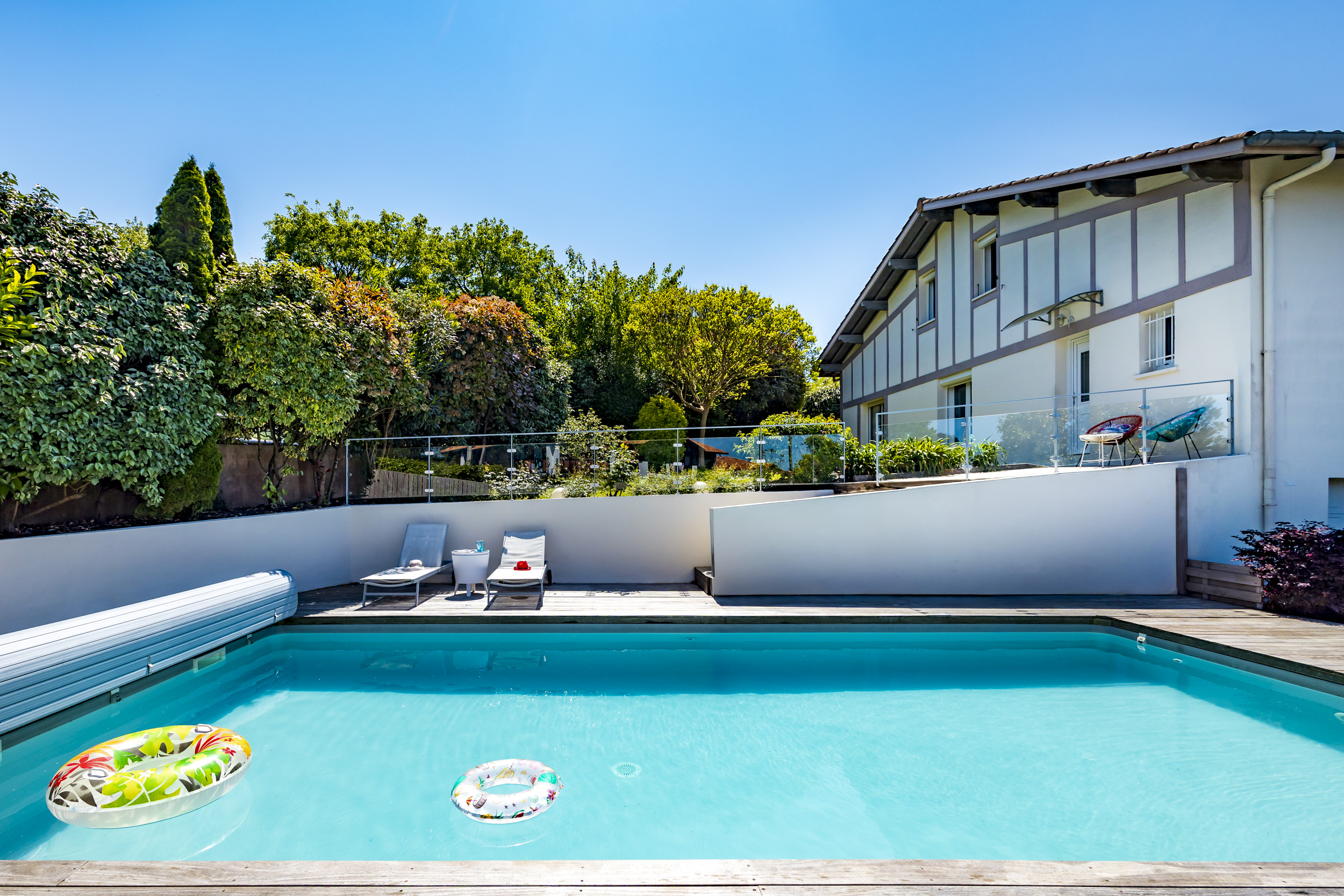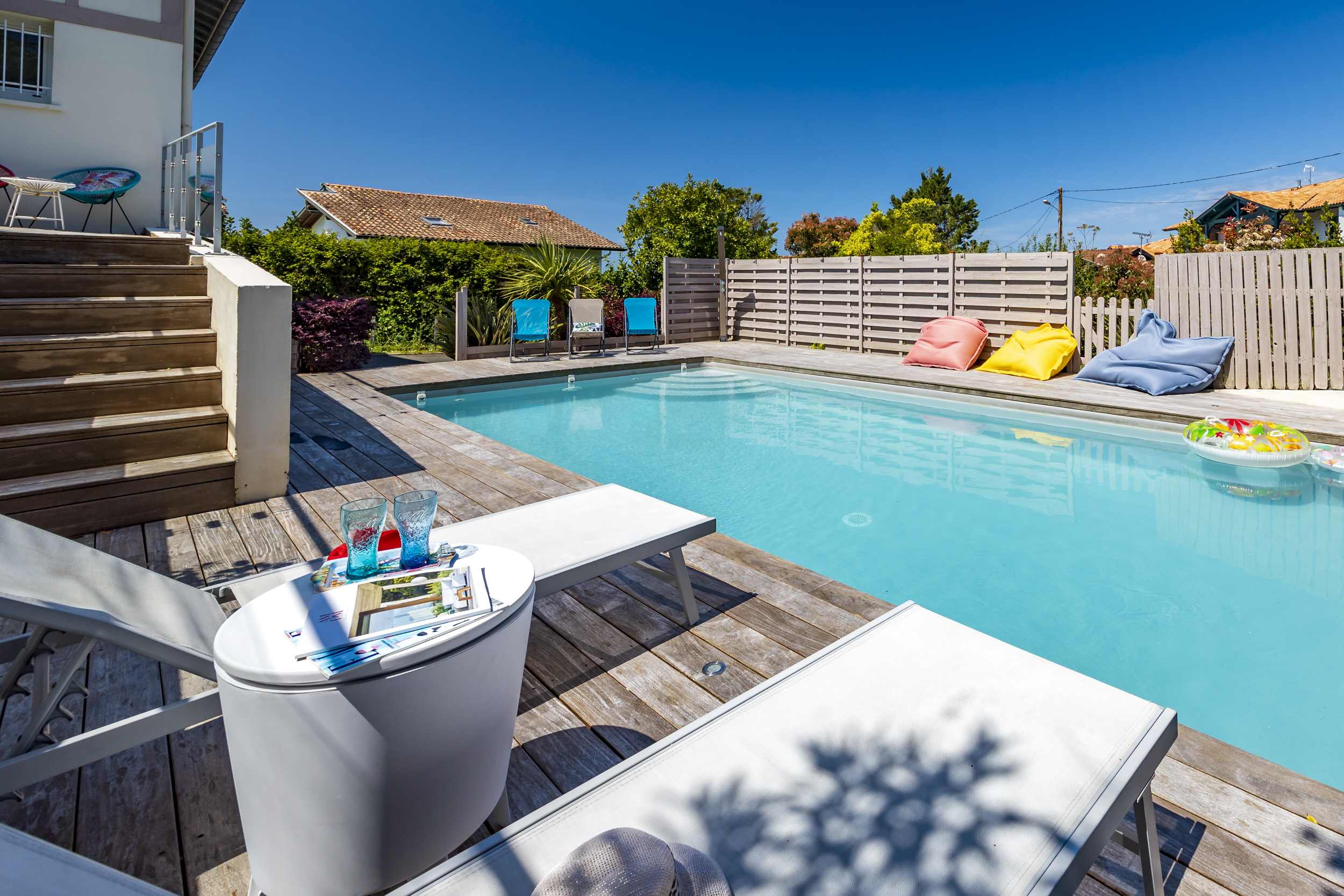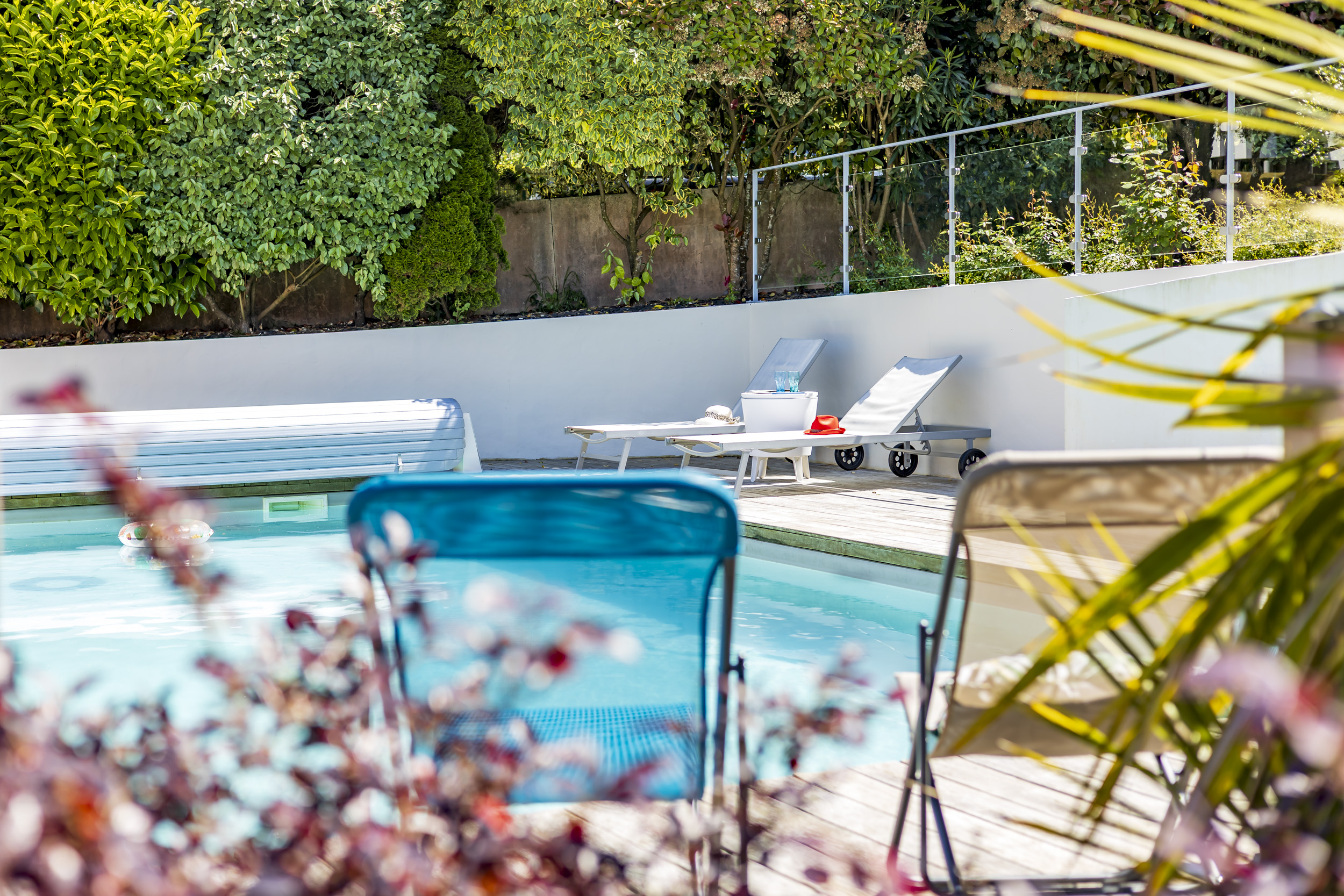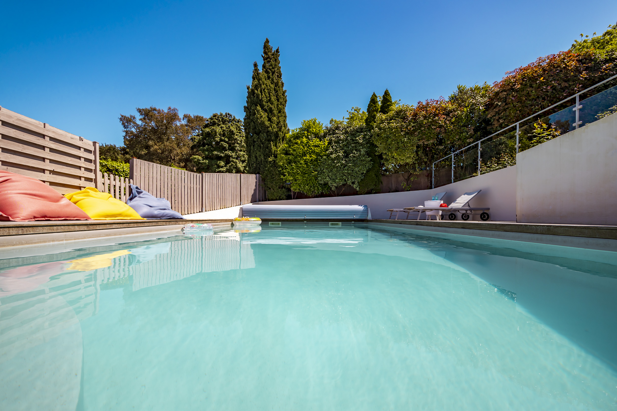 Ici, chaque journée commence par un plongeon dans la piscine chauffée, entourée d’une terrasse XXL pour bronzer, siroter un café ou improviser une sieste au soleil. Pas de voisins curieux, juste vous, vos proches, et le chant des oiseaux en fond sonore.