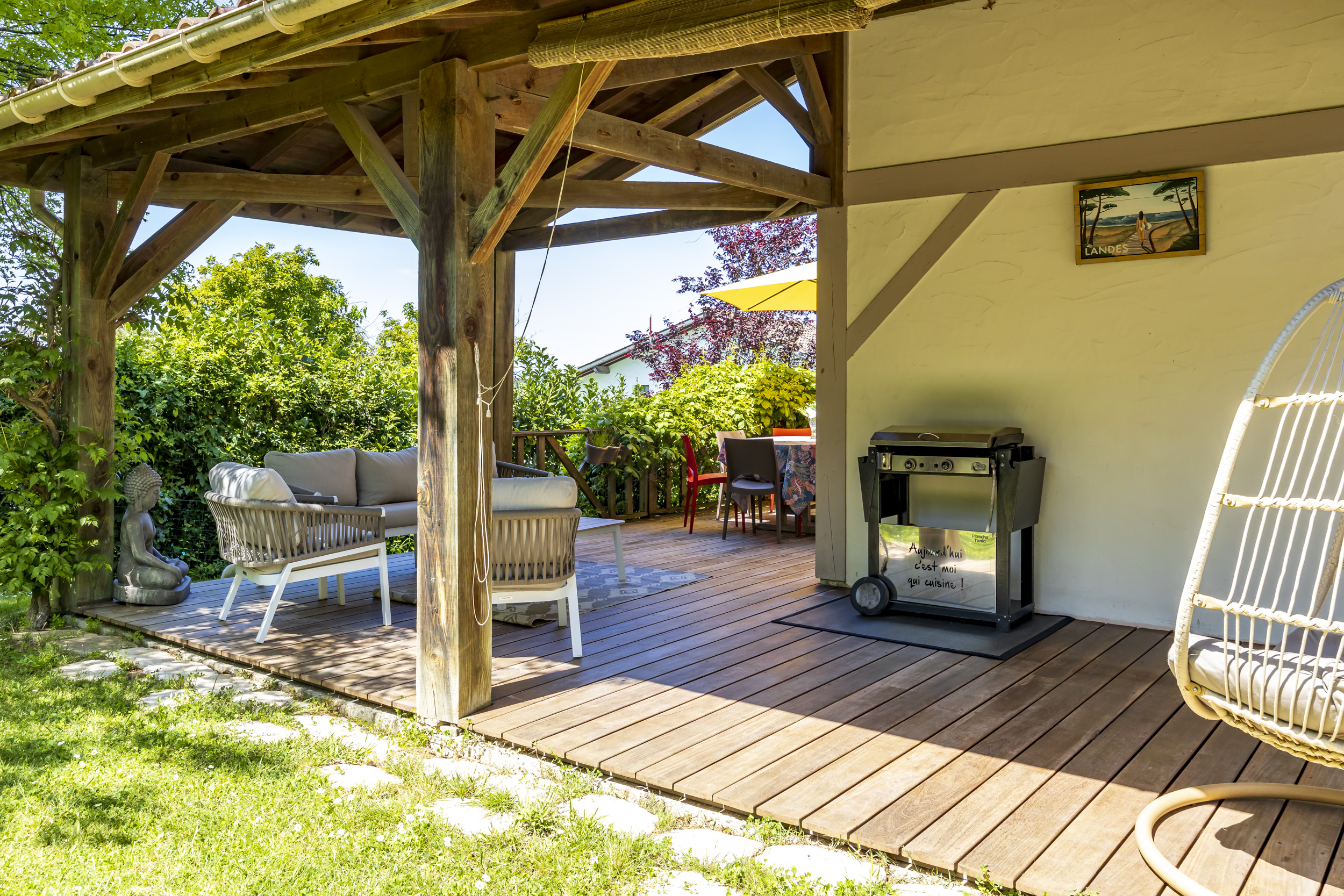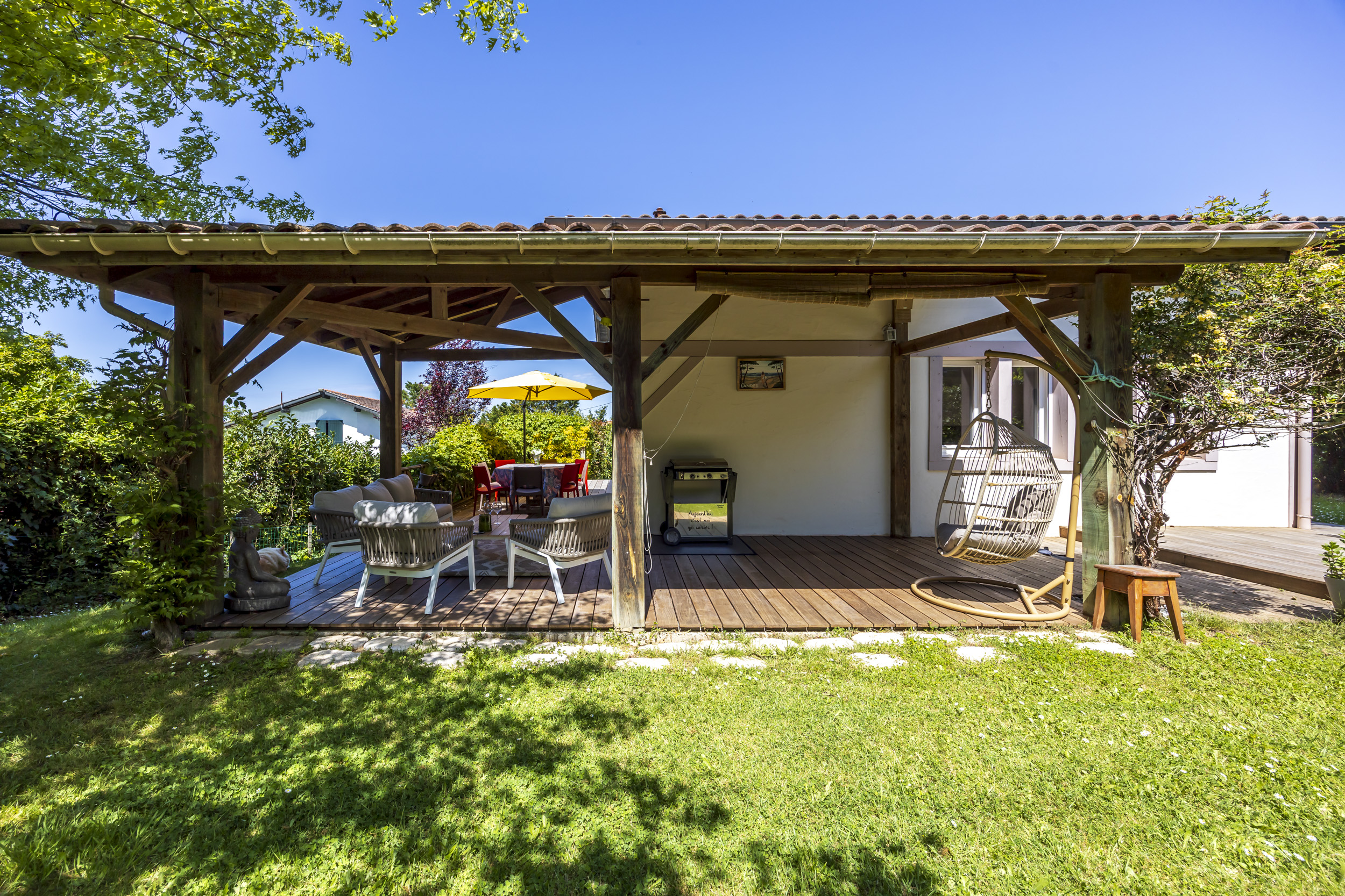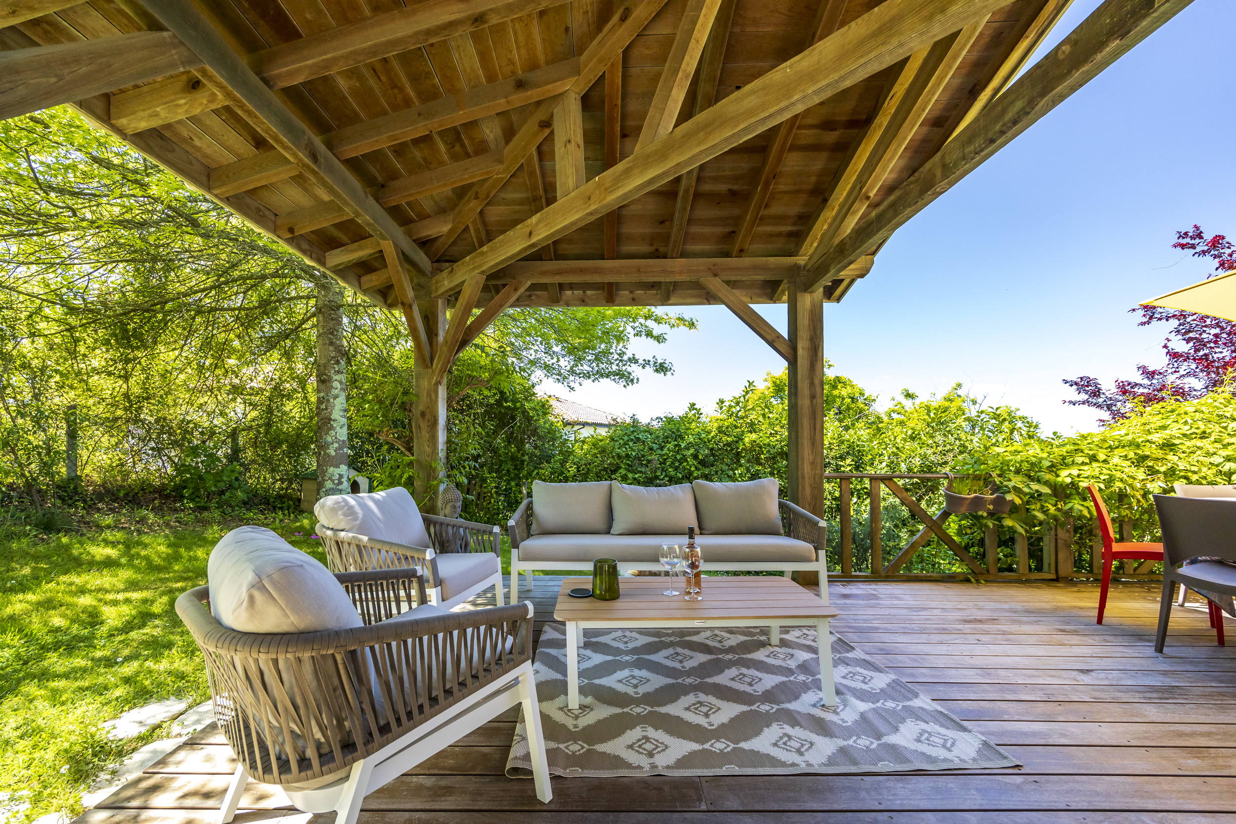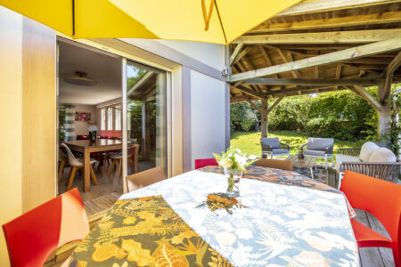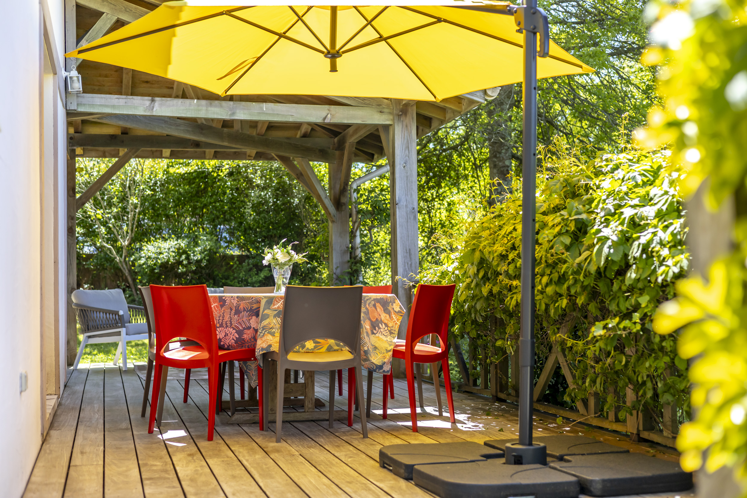 Seconde grande terrasse, autour de la maison pour des déjeuners ombragés en famille.