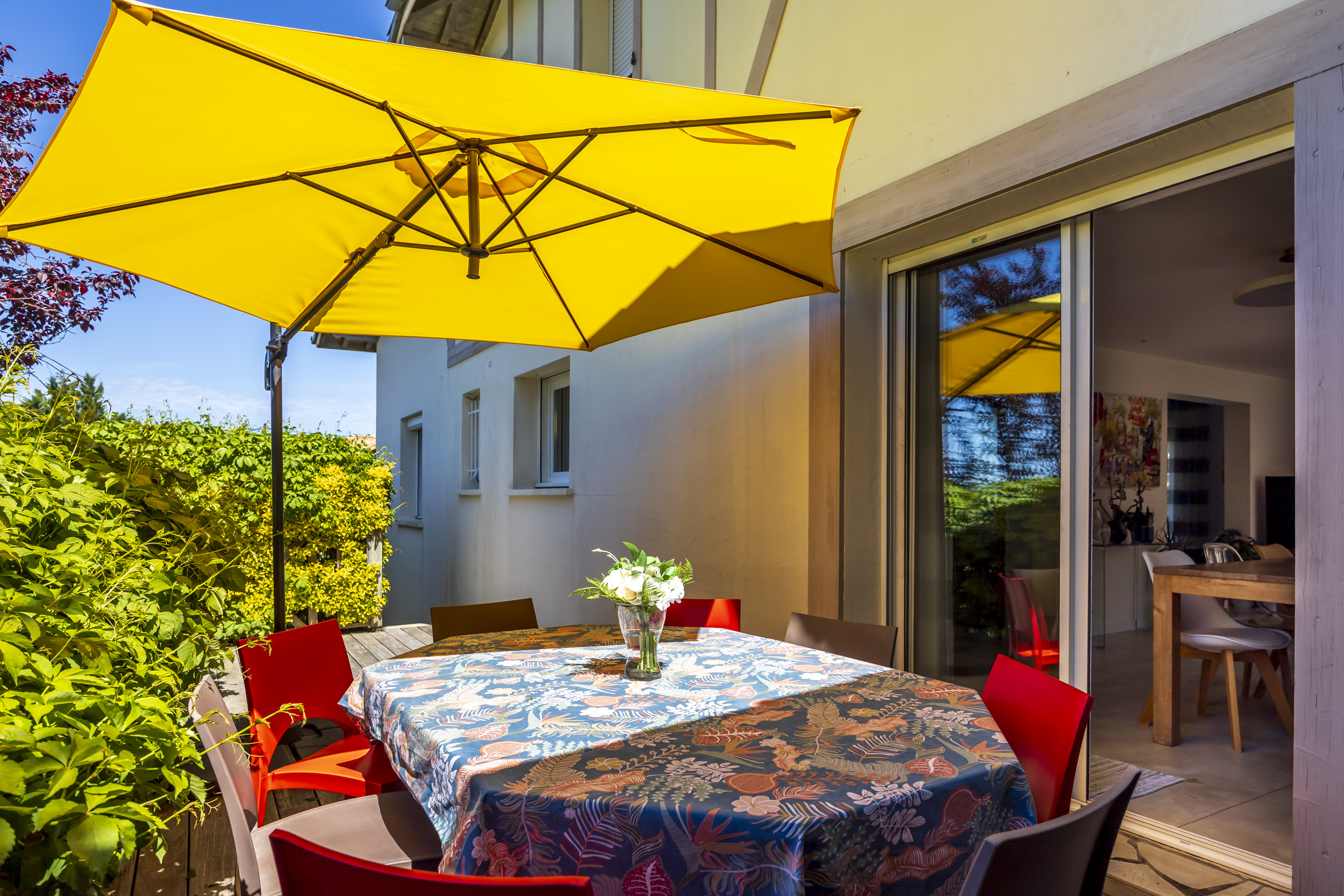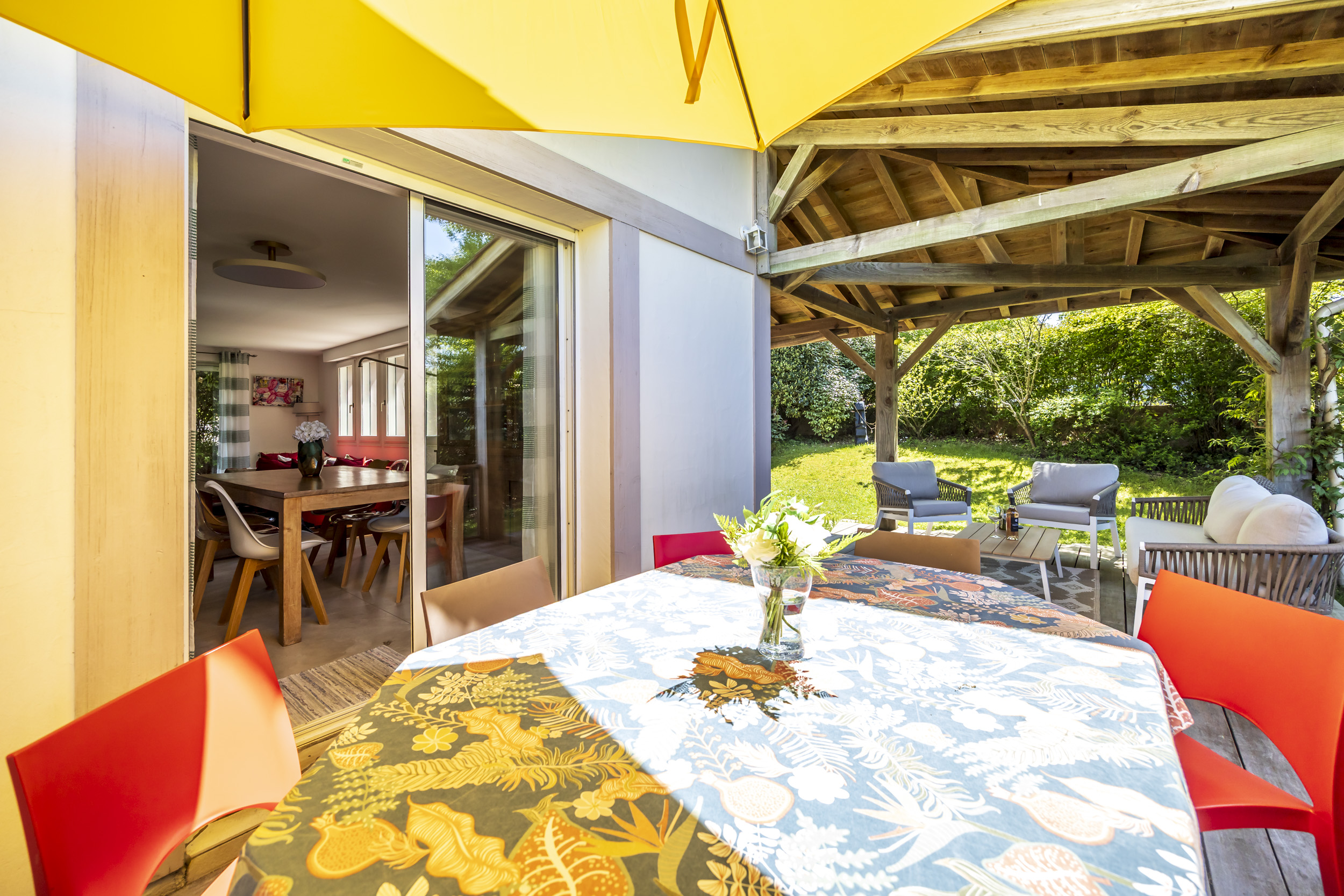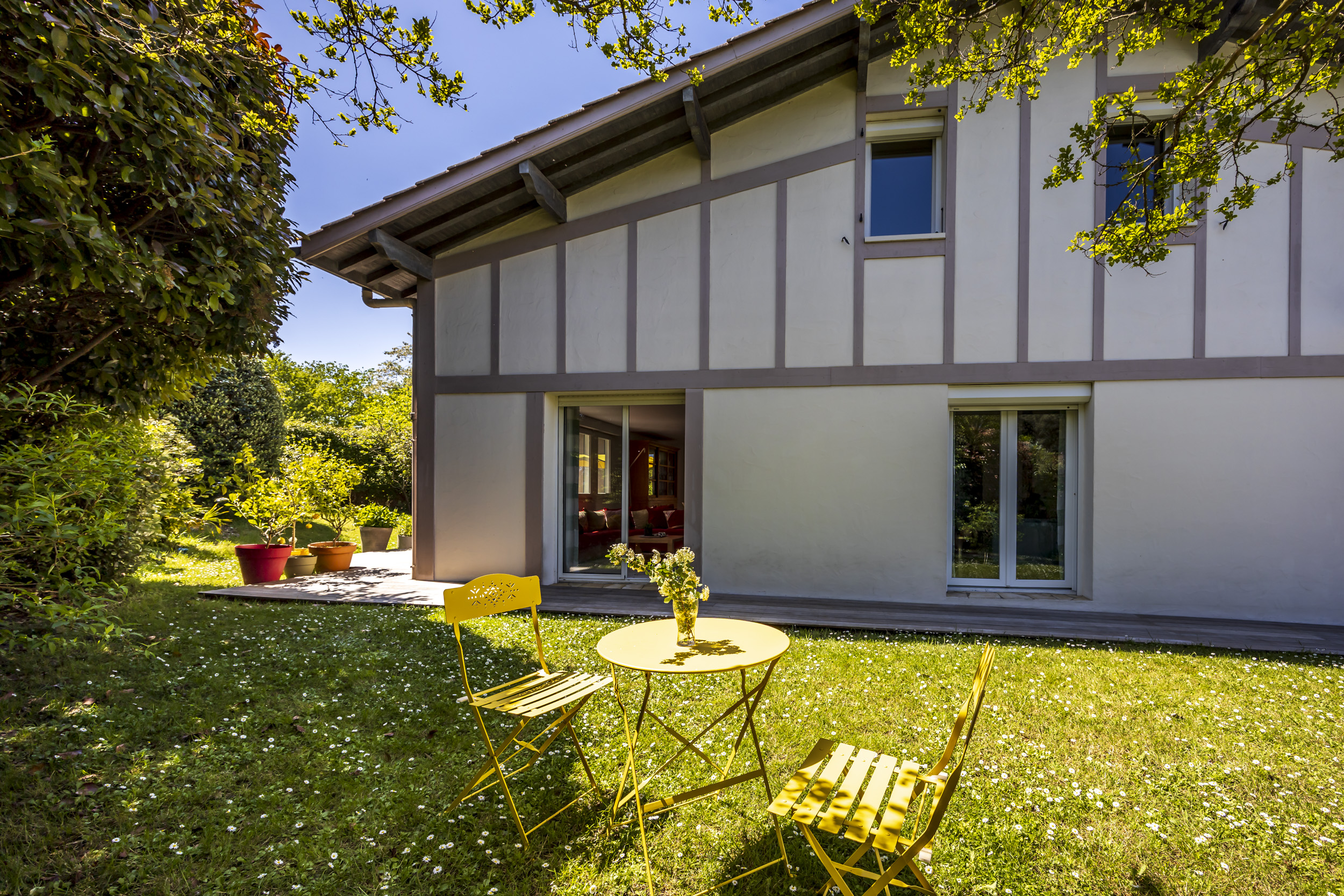 Seconde grande terrasse, autour de la maison pour des déjeuners ombragés en famille.