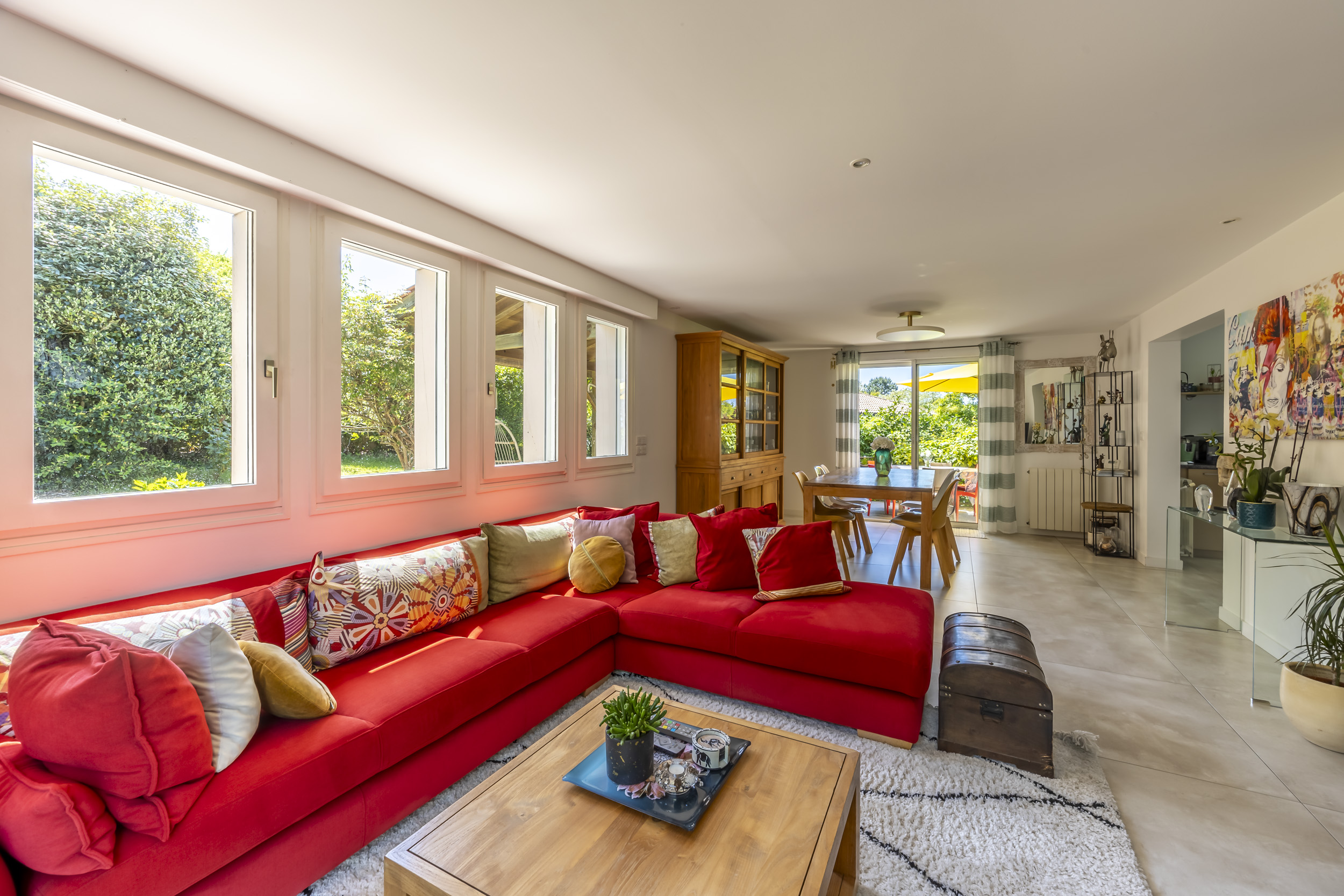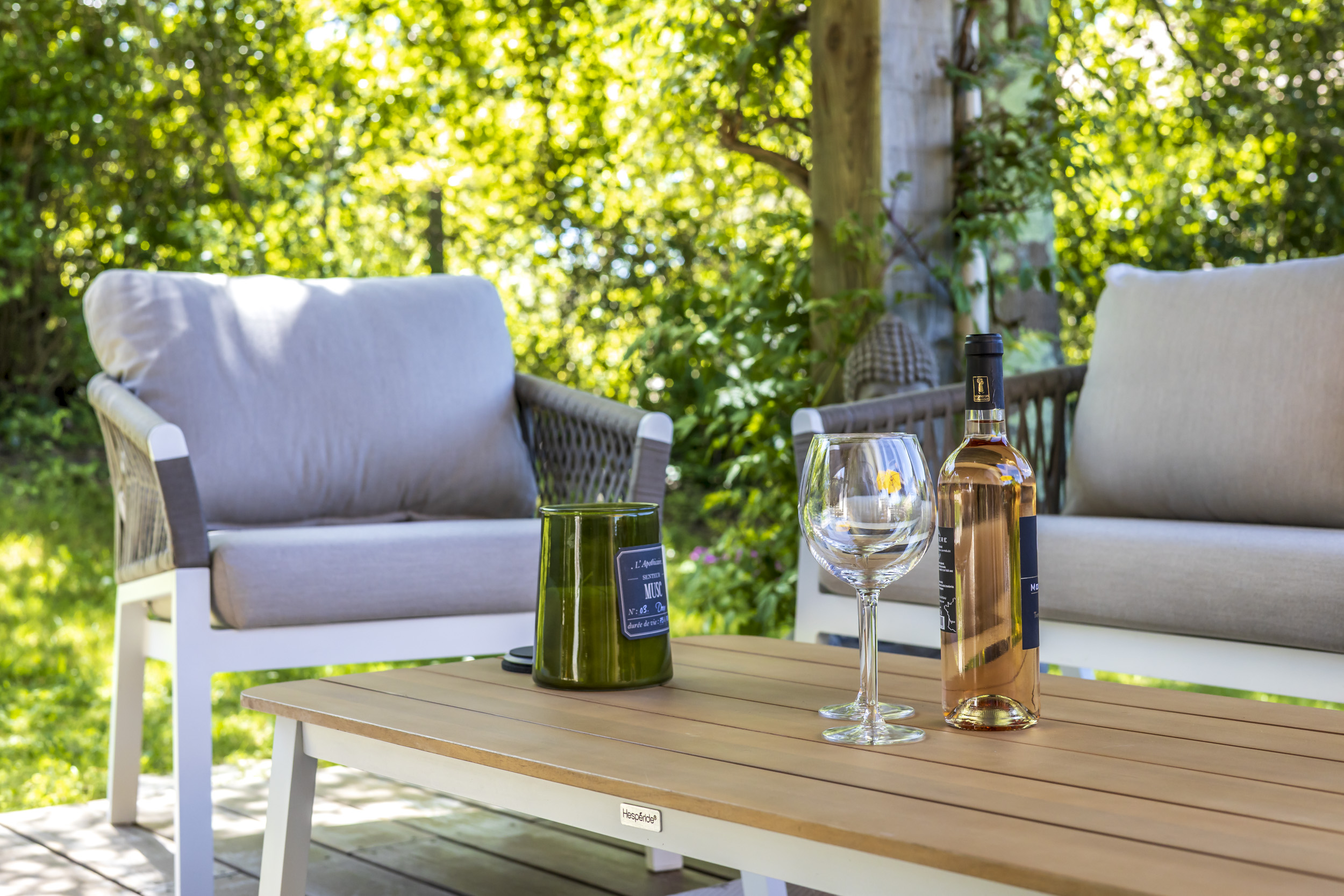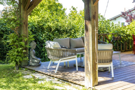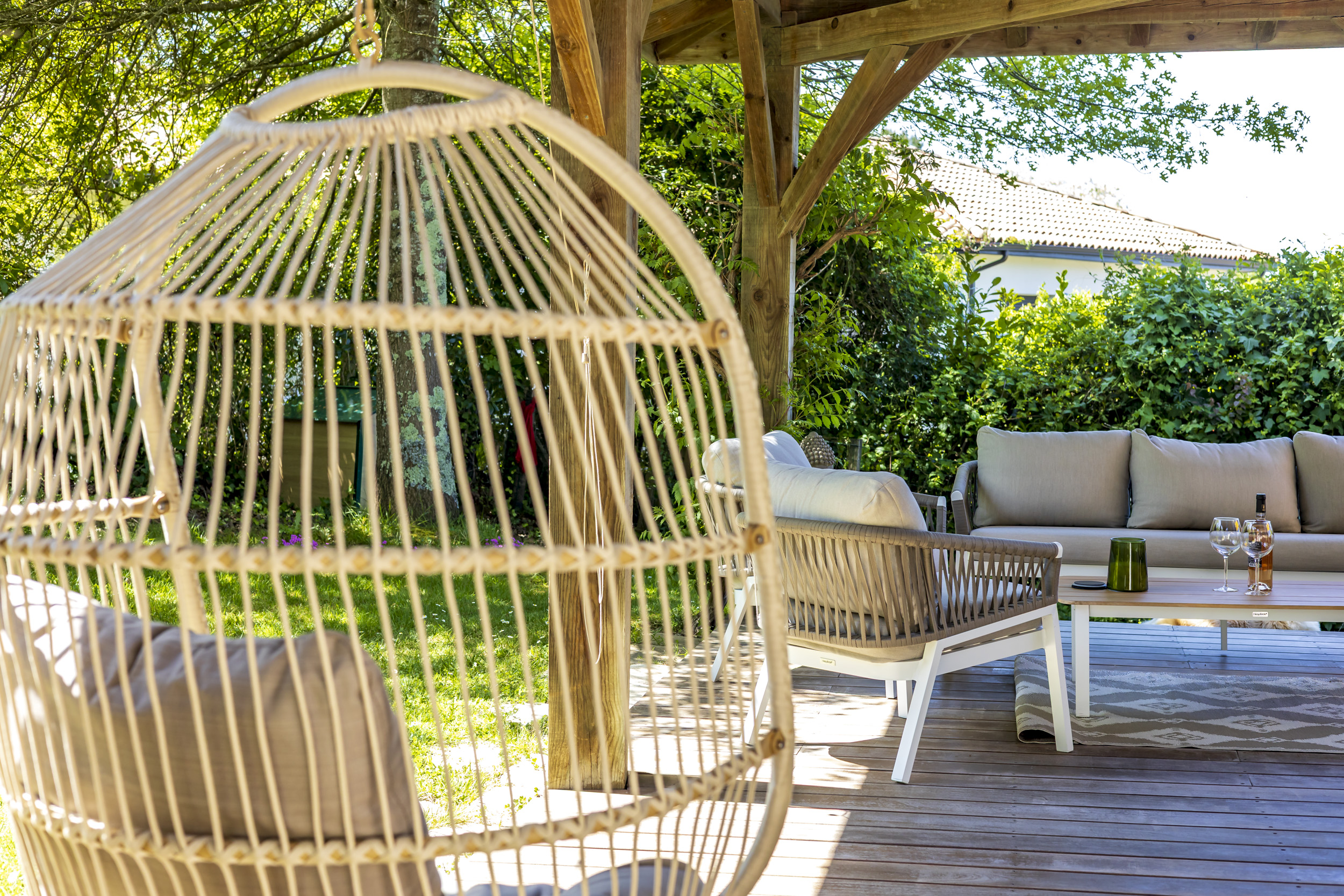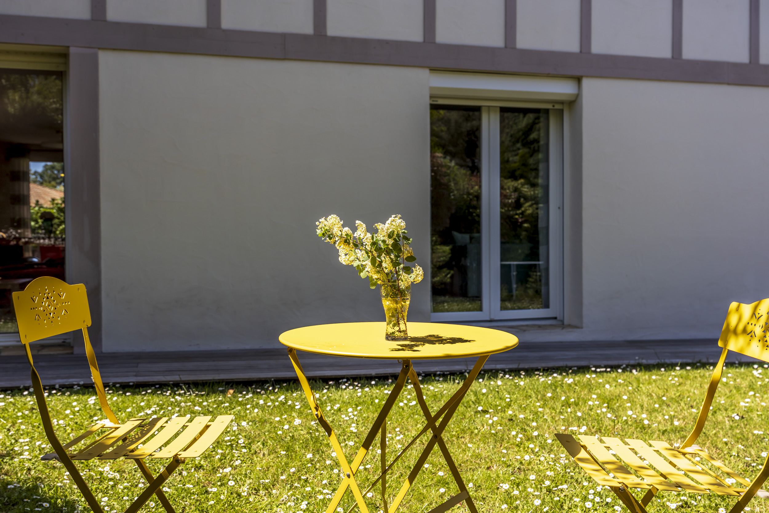 Seconde grande terrasse, autour de la maison pour des déjeuners ombragés en famille.