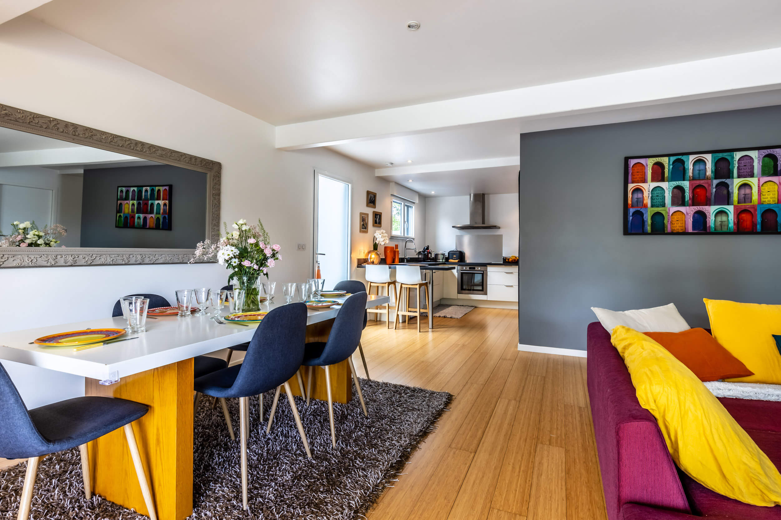 Cette villa cosy, sans travaux, aux notes colorées entourée de nature, est placée idéalement dans un quartier prisé entre les commerces, le centre d’Anglet, son vivier local, Biarritz et ses belles plages rocheuses, et l’authentique ville de Bayonne.